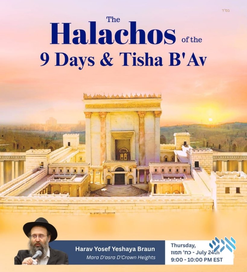 Tonight 9:00-10:00 PM ET: A special shiur on the halachos and minhagim of the Nine Days and Tisha B’av will be delivered by Harav Yosef Y. Braun. Join live on Anash.org.