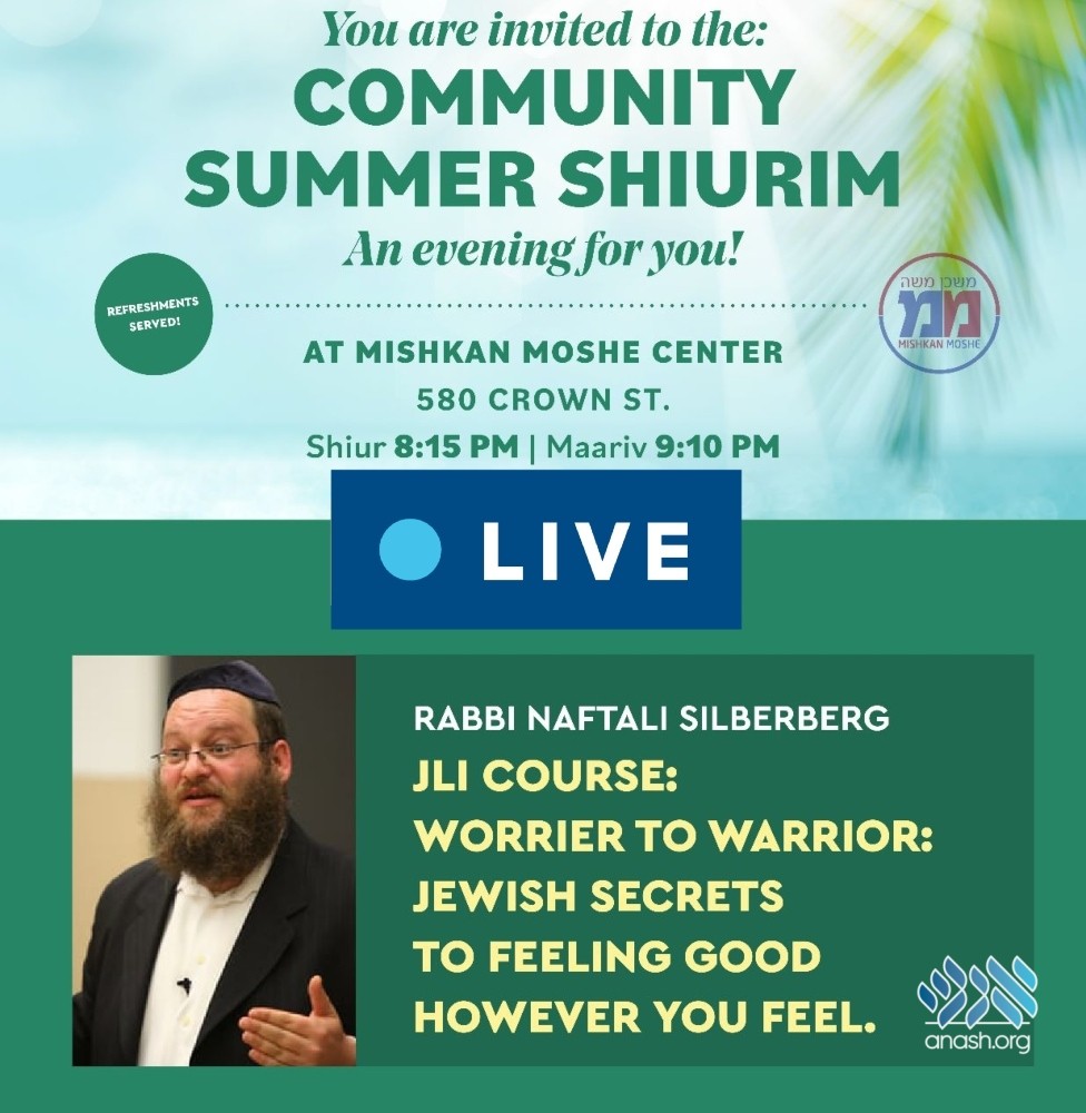 Join Live at 8:15 PM: Rabbi Naftali Silberberg will be presenting a JLI Course: Worrier to Warrior: Jewish Secrets to Feeling Good However You Feel.