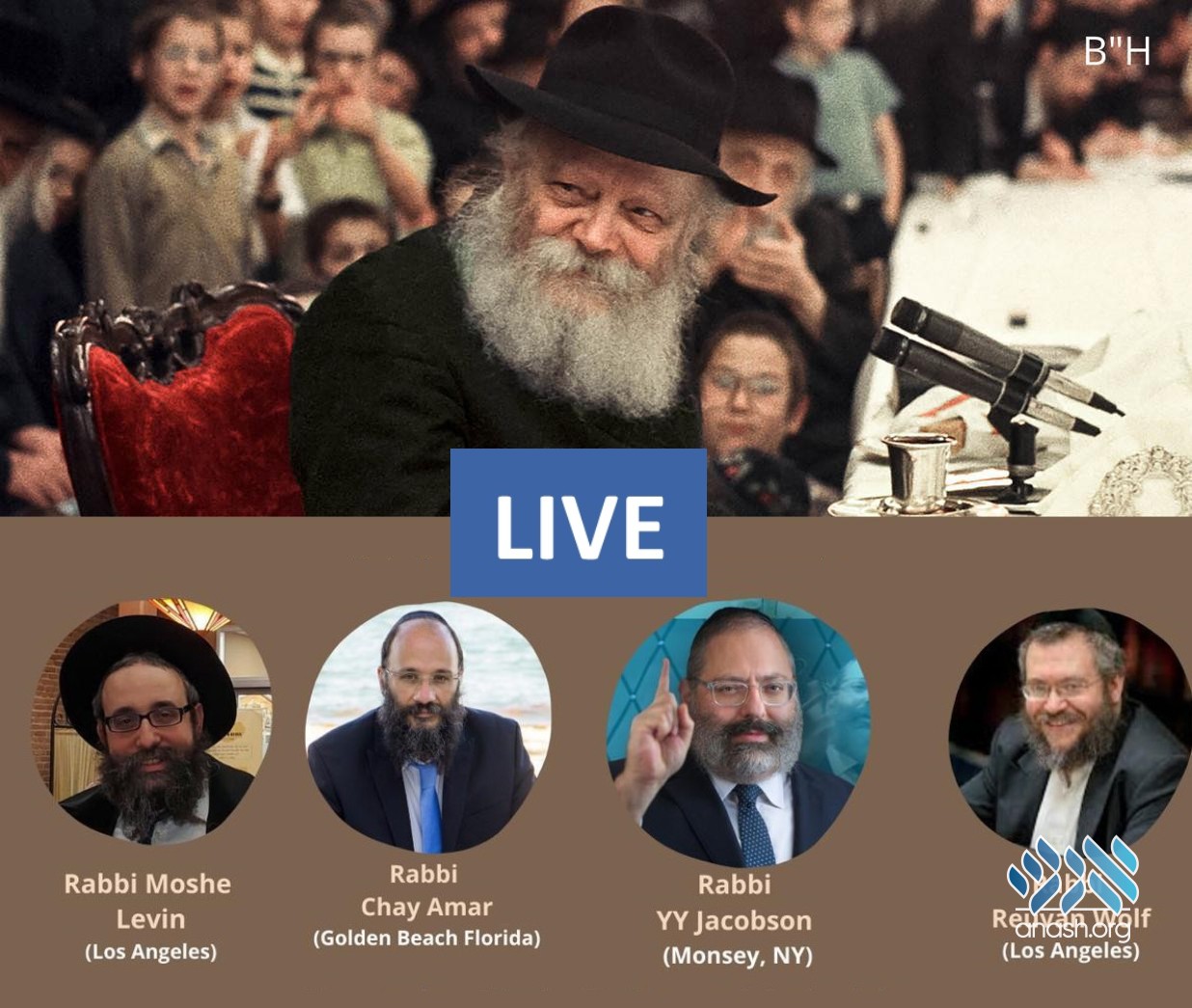 Join Live at 9:15 PM ET: A farbrengen to Connect, Impact and Inspire will take place tonight with Rabbi YY Jacobson, Rabbi Chay Amar, Rabbi Moshe Levin, and Rabbi Reuven Wolf.