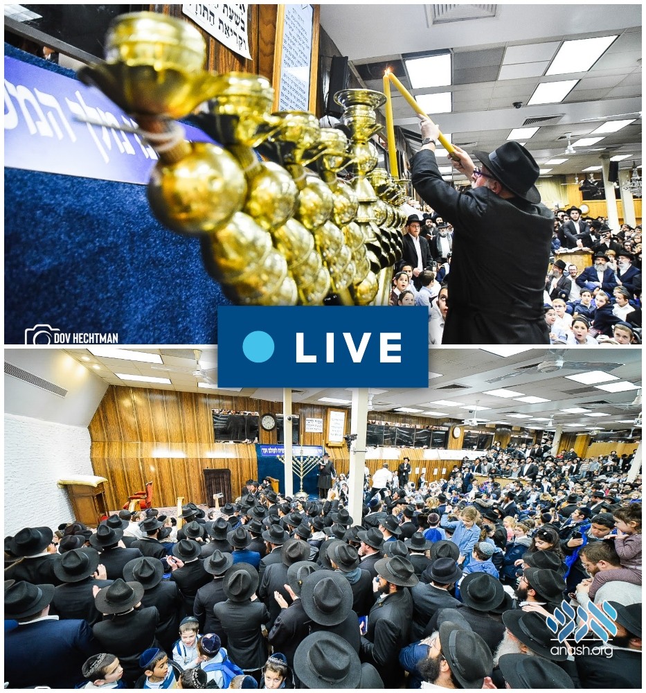 Watch Live at 3:25 PM ET: Mincha in 770 will be followed by the kindling of the third light of Chanukah, after which the large crowd will join in a rousing rendition of Haneiros Halalu.