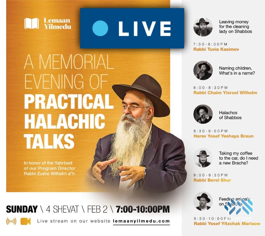 Machon Lemaan Yilmedu invites you to join a Memorial Evening of Practical Halachic Talks, in honor of the yahrtzeit of our Program Director, Rabbi Zushe Wilhelm a”h.