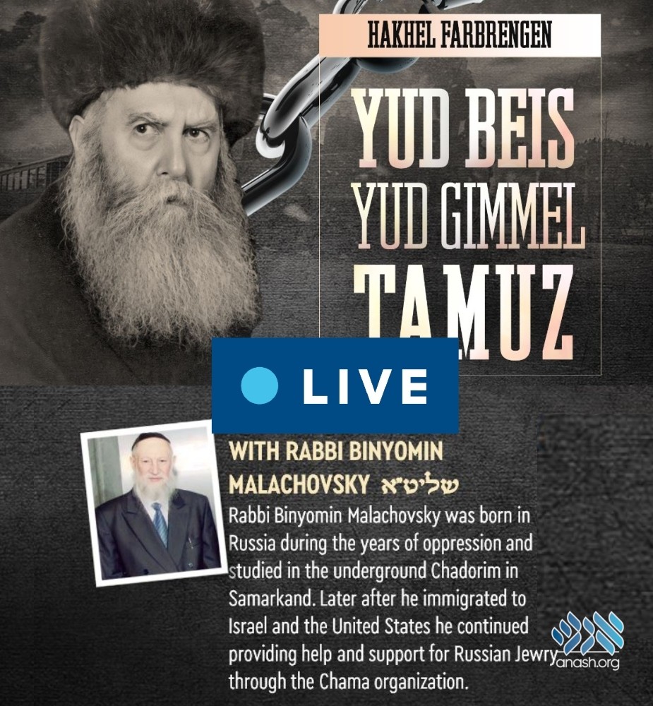 Live Now: Rabbi Benjamin Malachovsky, who studied in underground chadorim in Samarkand and later served on the executive committee of Chamah, will share memories of mesiras nefesh in the USSR.