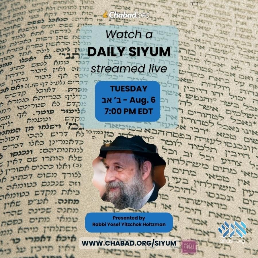 Live at 7:00 PM: Following the Rebbe’s instruction to hold siyumim daily, a live siyum will be broadcast by Rabbi Yosef Yitzchok Holtzman, Rabbi at SUNY Downstate Medical Center & Lubavitch of East Flatbush, on masechta Zevachim.