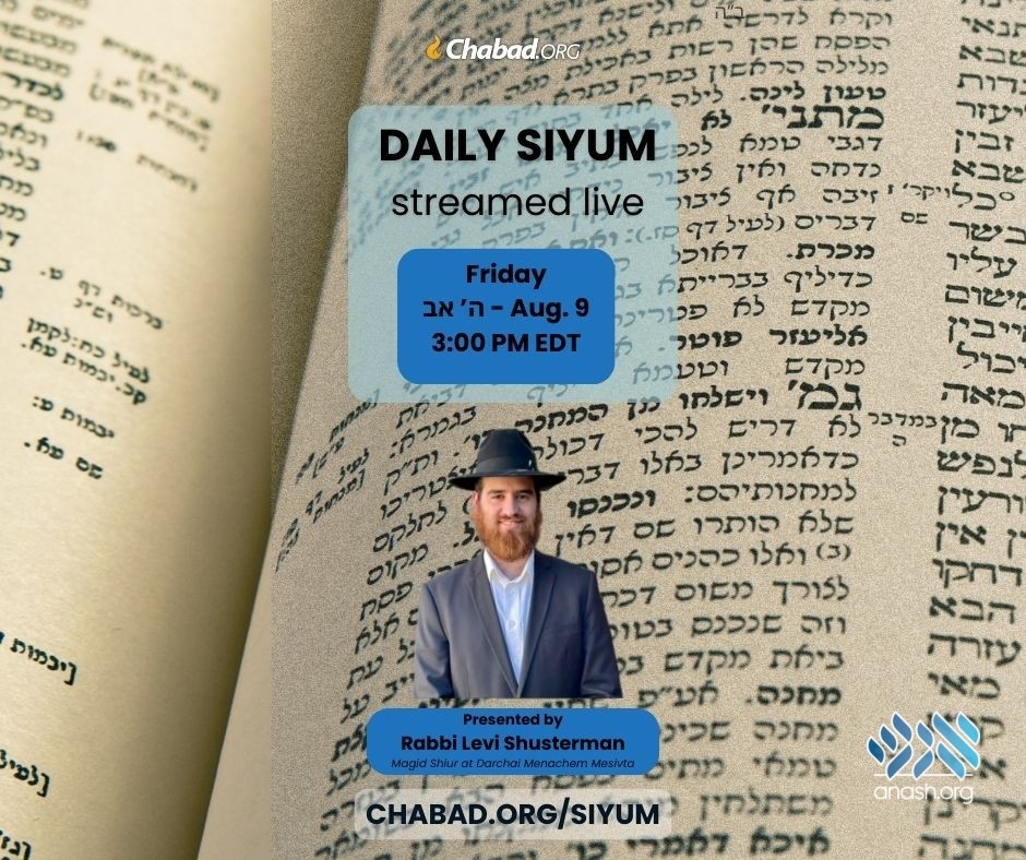 Live at 3:00 PM: Following the Rebbe’s instruction to hold siyumim daily, a live siyum will be broadcast by Rabbi Levi Shusterman, Magid Shiur at Darchai Menachem Mesivta, on masechta Megillah.