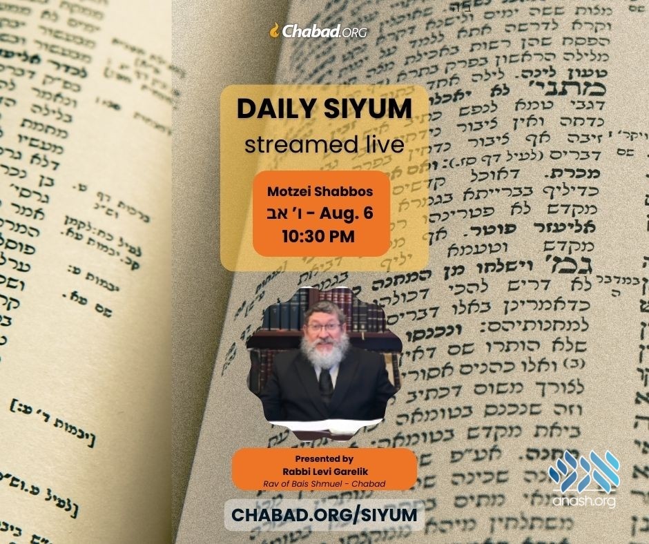 Live at 3:00 PM: Following the Rebbe’s instruction to hold siyumim daily, a live siyum will be broadcast by Rabbi Levi Garelik, Rav of Bais Shmuel – Chabad, on masechta Rosh Hashanah.
