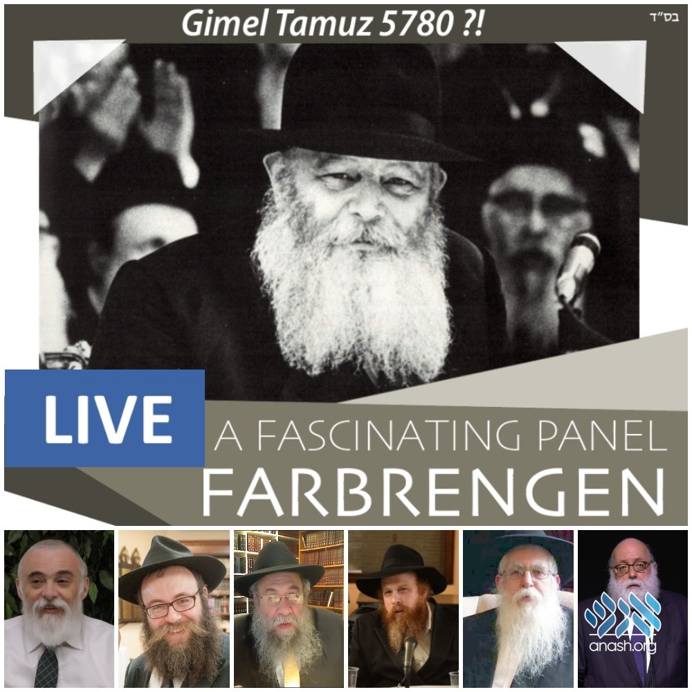 Join live at 7:15 PM EDT: A fascinating panel Farbrengen on how we can prepare ourselves for Gimmel Tammuz will take place tonight with Rabbis, Yisroel Deren, Simon Jacobson, Shlomo Majesky, Moshe New, Akiva Wagner, and Levi Jacobson.