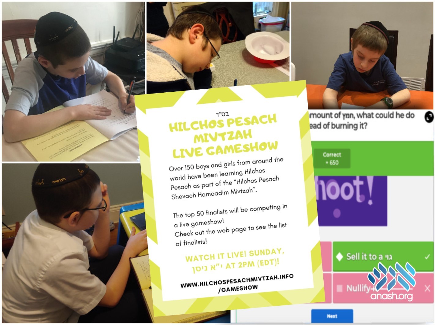 50 finalists who spent weeks learning Hilchos Pesach in ‘Shevach Hamoadim’ will be competing in a live game show.