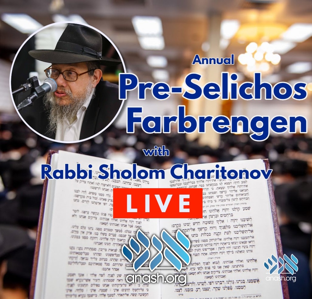 Live: Pre-Selichos Farbrengen with Rabbi Sholom Charitonov