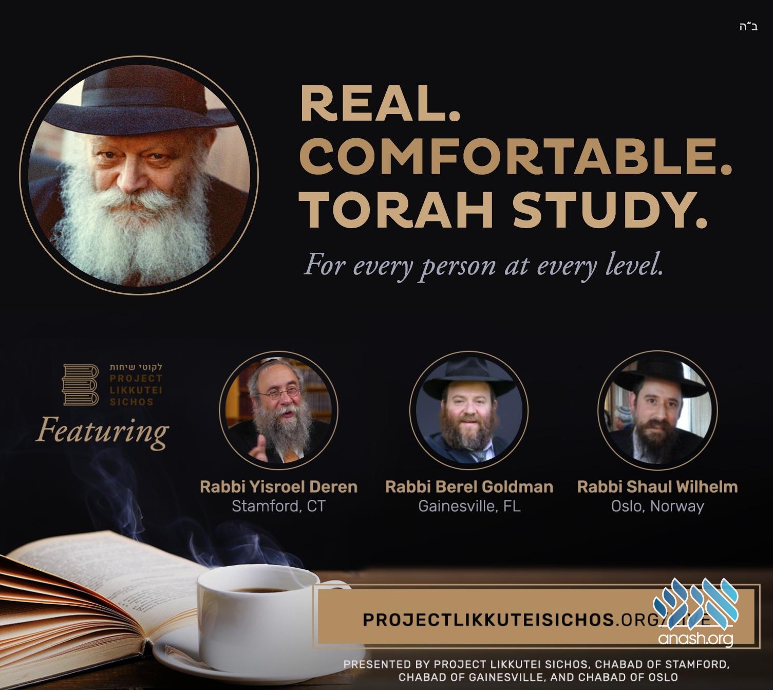 Join Live at 9:00 PM ET: Project Likkutei Sichos presents a live farbrengen on the weekly sicha with Rabbis Yisroel Deren, Berel Goldman and Shaul Wilhelm.
