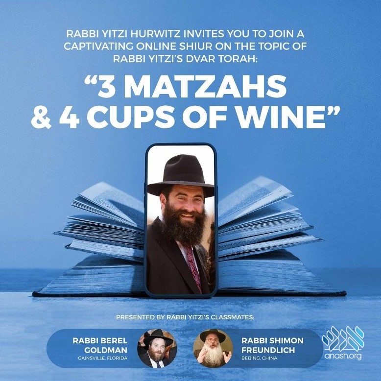 Live at 10 PM ET: Live shiur with Rabbis Yitzi Hurwitz, Shimon Freundlich (Beijing), and Berel Goldman (Gainesville) discussing Rabbi Yitzi’s Pesach Dvar Torah.