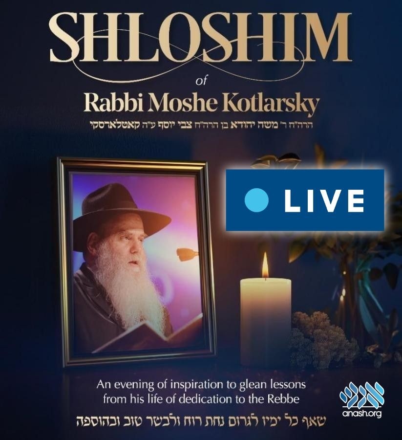 Live at 8:00 PM ET: A Shloshim event for Rabbi Moshe Kotlarsky AH will feature an evening of inspiration to glean lessons from his life of dedication to the Rebbe.