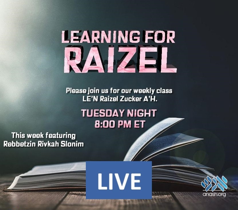 Join Live at 8:00 PM ET: A weekly class founded in memory of Raizel Zucker will take place tonight, featuring Mrs. Rivka Slonim.