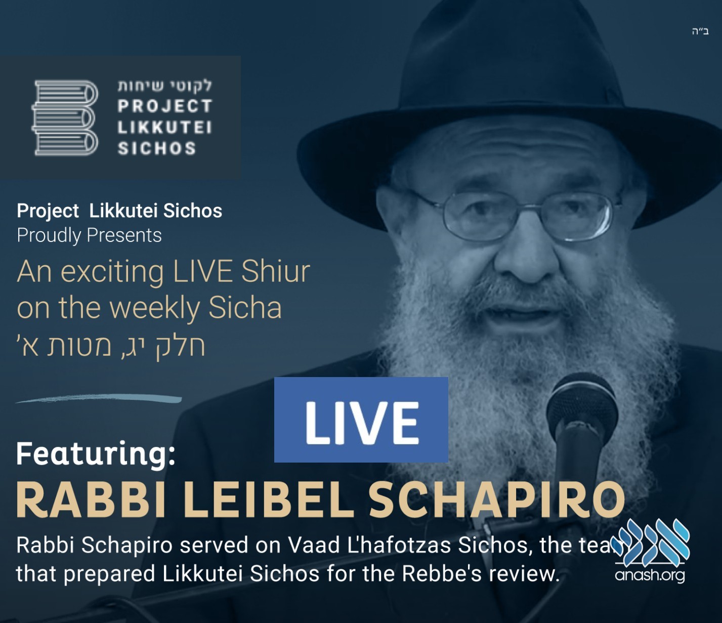 Project Likkutei Sichos presents a live shiur with Rabbi Leibel Schapiro, Rosh Yeshiva of Miami yeshiva, who merited to be on the team that prepared Likkutei Sichos for the Rebbe’s review.