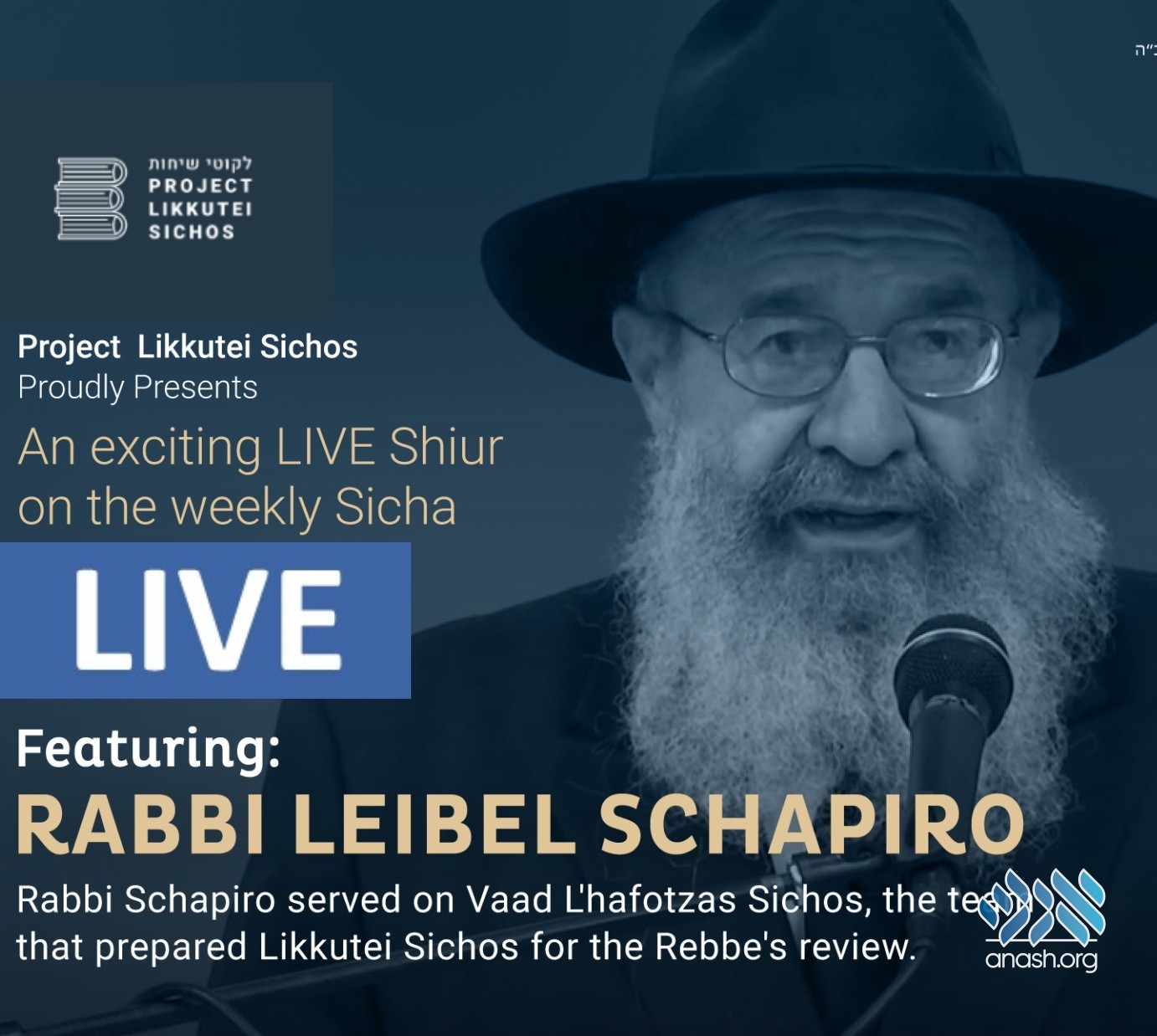 Project Likkutei Sichos presents a live shiur with Rabbi Leibel Schapiro, Rosh Yeshiva of Miami yeshiva, who merited to be on the team that prepared Likkutei Sichos for the Rebbe’s review.