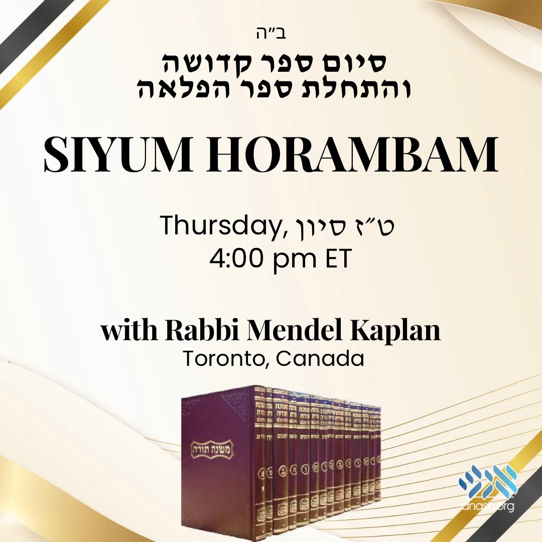 Live at 4:00 PM ET: An international Siyum celebrating the completion of the Rambam’s Sefer Kedusha and the start of seder Haflaa will feature Rabbi Mendel Kaplan, shliach to Toronto, Canada.
