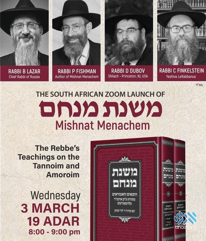 Join Live Wednesday at 1:00 PM ET: A Zoom Launch will be held for the new sefer Mishnas Menachem, which collects, summarizes and organizes the Rebbe’s teachings about some two hundred personalities of the period of the Talmud.