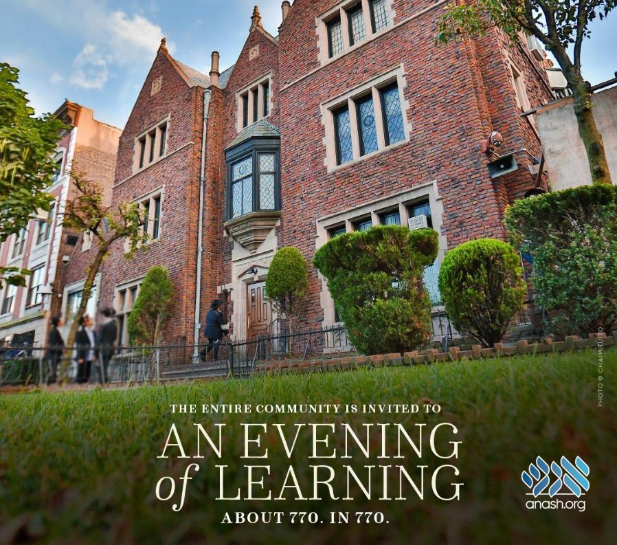Watch Live: An evening of learning about 770 with Rabbi YY Jacobson is taking place in 770 at 8:00 pm.