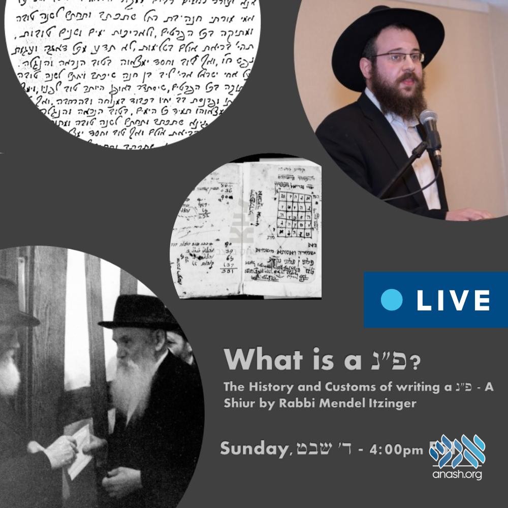 Watch a replay: Rabbi Mendel Itzinger, director of Iggud Hayeshivos, will present some of the historical background and customs of writing a pidyon nefesh.
