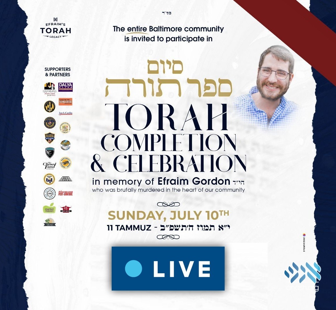 Join Live at 2:30 PM: A new Sefer Torah will be completed in Baltimore on Sunday in memory of Efraim Gordon HY”D, who was brutally murdered in their neighborhood.