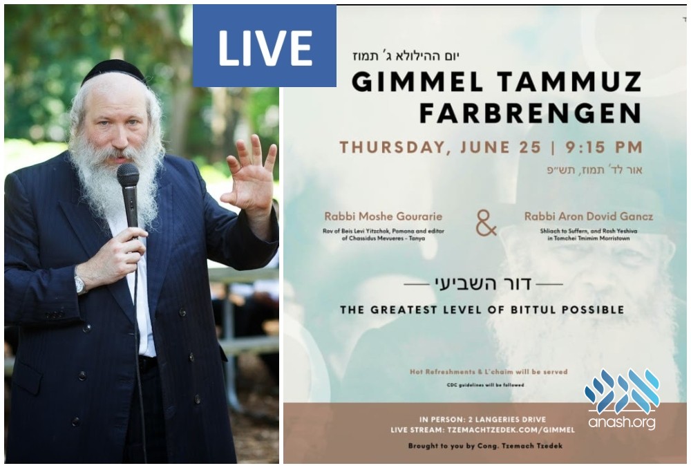 The farbrengen will be held on Thursday at 9:15 PM ET at Congregation Tzemach Tzedek, 2 Langeries Drive, Monsey NY and live streamed at https://www.tzemachtzedek.com/gimmel.