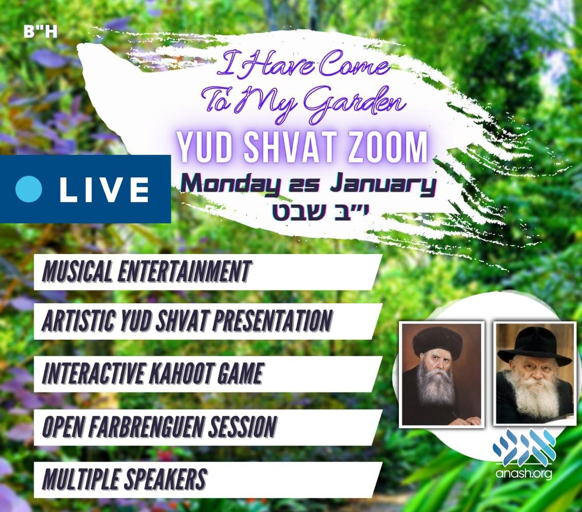 Live, Monday 13 Shevat, January 25 at 1 pm PST/ 4 pm EST.