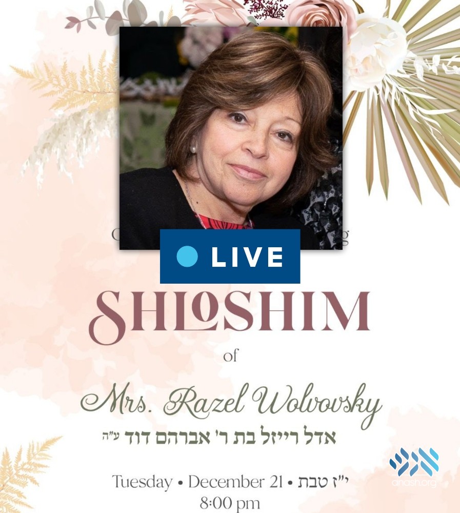 Join Live at 8:00 PM ET: A community women’s gathering will mark the shloshim of Mrs. Razel Wolvovsky, a beloved Crown Heights educator who was known for her kindness and generosity of spirit, with family members and friends sharing personal recollections.