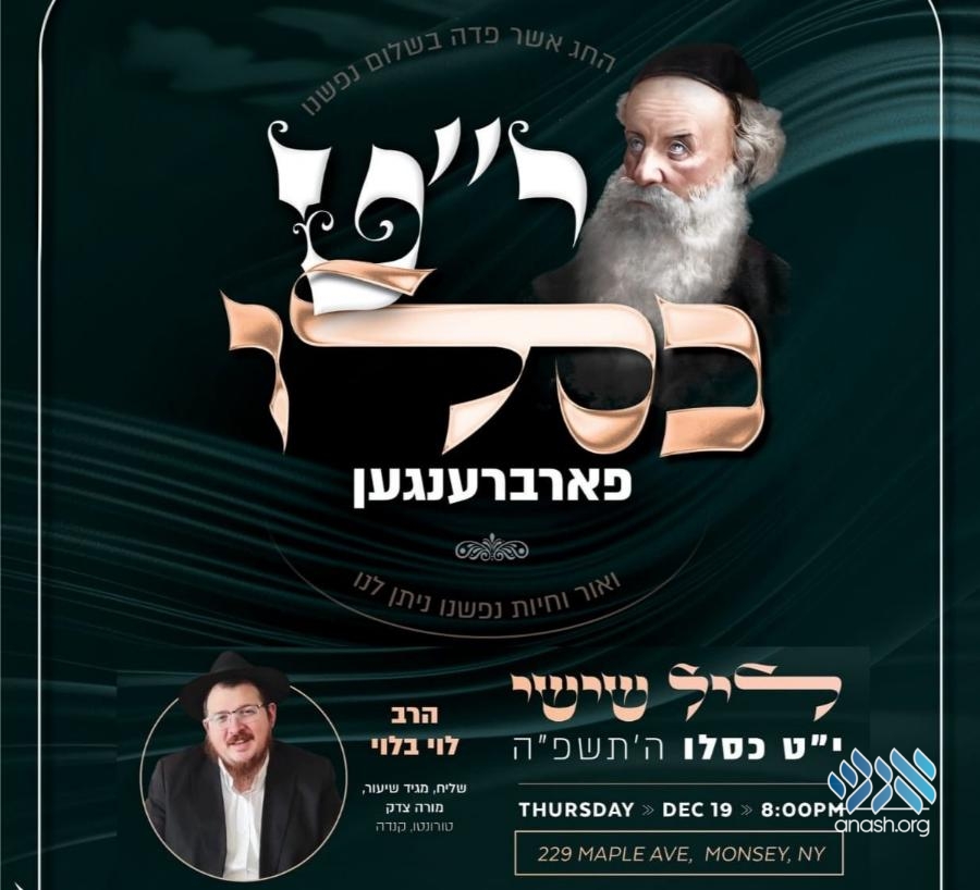 Watch live at 8 PM: The Gala Yud Tes Kislev Farbrengen in Monsey will feature Toronto shliach and maggid shiur, Rabbi Levi Blau. The event will be broadcast live on Anash.org.