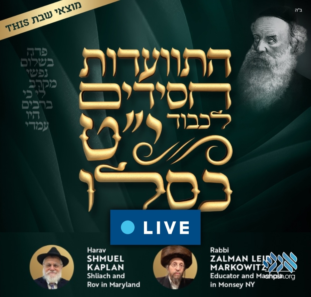 Join Live at 8:00 PM: The greater Monsey community will celebrate Yud Tes Kislev with a farbrengen featuring Rabbi Shmuel Kaplan, head shliach of Maryland, and Rabbi Zalman Leib Markowitz, renowned mechanech, with a focus on increasing in mivtzoim.