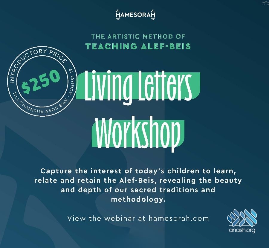 Hamesorah is pleased to announce the release of the ‘‘Living Letters Workshop” to view in our online classroom. The workshop helps teachers and parents capture the interest of today’s children to learn, relate and retain the Alef-Beis.