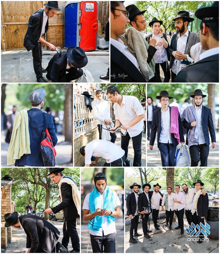 With the hours progressing towards Yom Kippur, residents and guests rushed to fulfill the customs of Erev Yom Kippur, including the symbolic malkos and the second round of mikvah for the day.