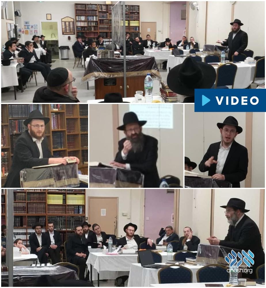 Anash and Temimim of Stamford Hill gathered on Wednesday evening for a Kinus Torah, with lectures by Rabbi Levi Yitzchak Raskin, Rabbi Gedaliah Lieberman, Rabbi Yehuda Benshimon and others.