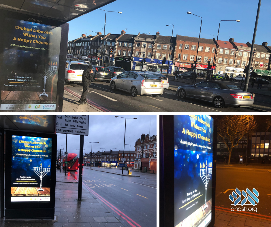 Digital bus stops in North London seen by thousands of people proudly displayed reminders to light the Menorah this chanukah.