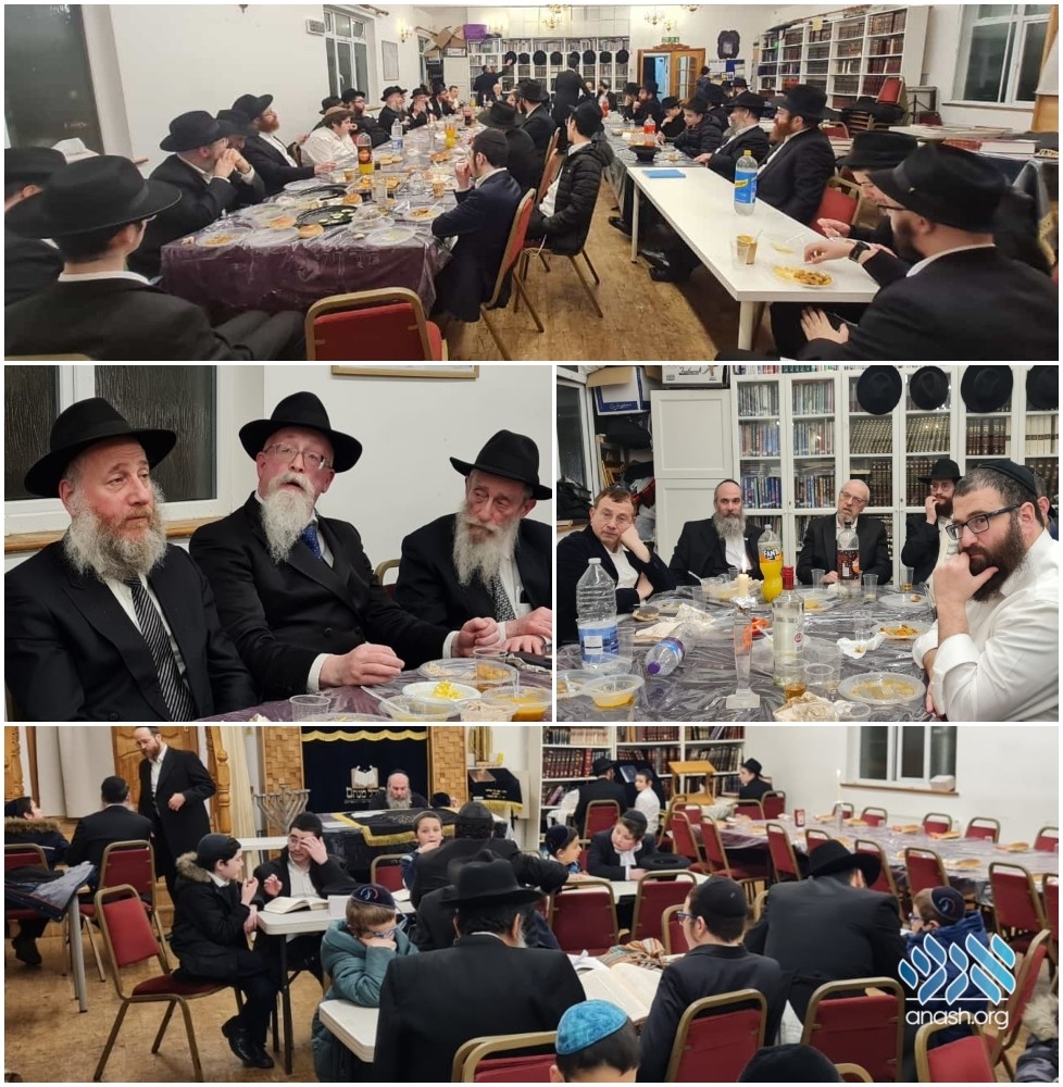 It was a busy Motzei Shabbos Hey Teves at Heichal Menachem, the Anash Shul in Golders Green, London, with an Avos Ubanim for children and a farbrengen for men.