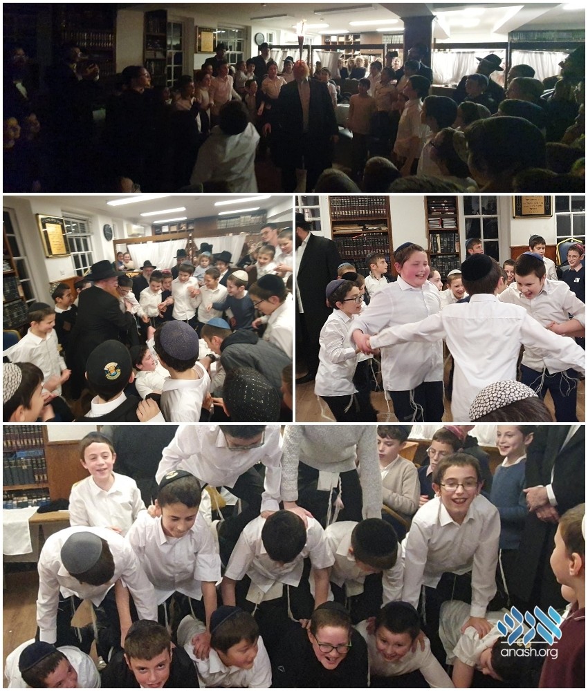 On Motzei Shabbos Chol Hamoed over 200 men, women, and children gathered together for an incredible and lively Hakhel Simchas Beis Hashoeva at the iconic Kingsley way Beis Hamedrash and Yeshiva. The boys danced and sang the Torah Posukim.