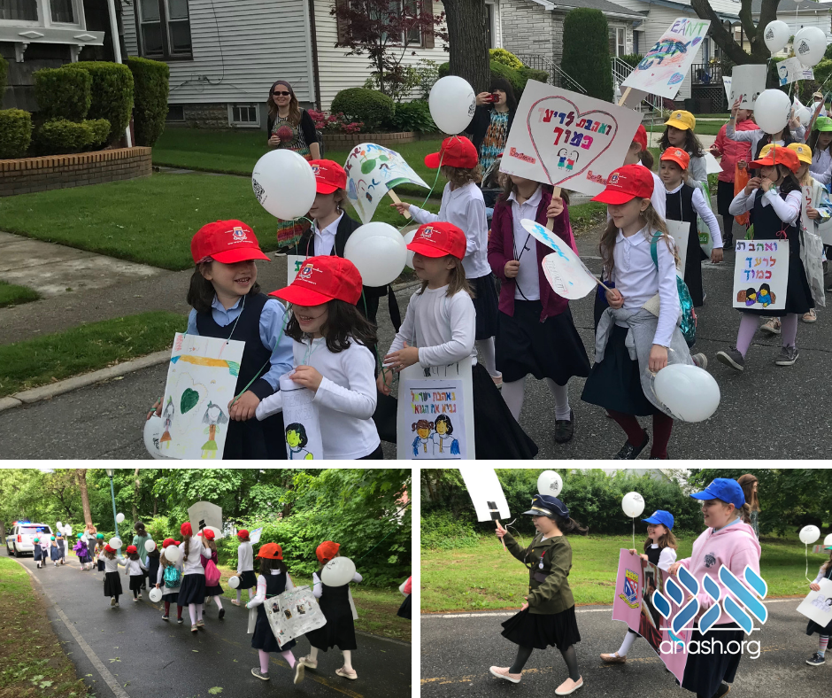 Cheder Chabad Girls of Long Island is a warm, chassidishe school located in Lynbrook, Long Island, and this year decided to arrange its own local Lag B’omer parade. Mrs. Unsdorfer, the school’s principal, made sure permits were arranged, and with the Rebbe’s brochos, and the work of the Tzivos Hashem Base Commander, all the details came together. The students and staff were all very excited in anticipation of Lynbrook’s first ever Lag B’omer parade! In the days leading up to Lag B’omer, the girls all did their part to prepare for the parade, creating banners in the theme of Ahavas Yisroel and practicing the psukim.