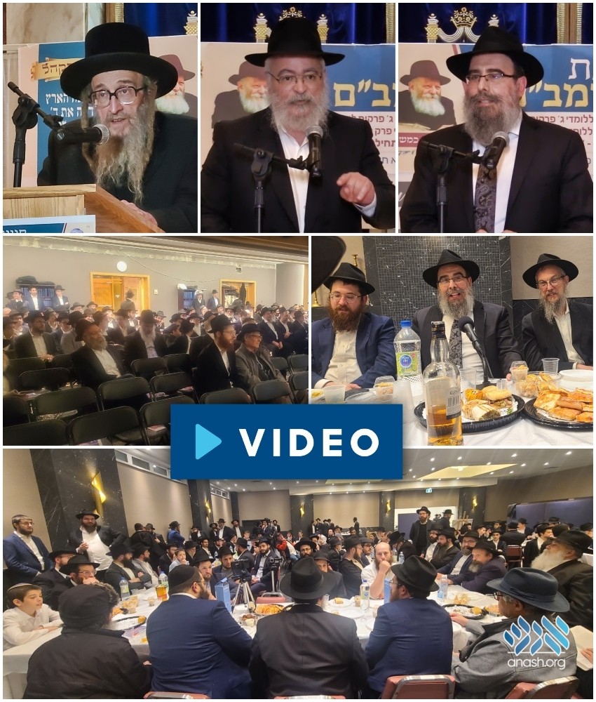 Rabbi Yochanan Wosner, Dayan of the Skver community in Montreal, delivered a dvar Torah and the final halachos of the 42nd Rambam study cycle were completed by Dayan Yonasan Binyomin Weiss, Chief Rabbi of Montreal and the leading Dayan on the Rabbinical Court of Montreal.