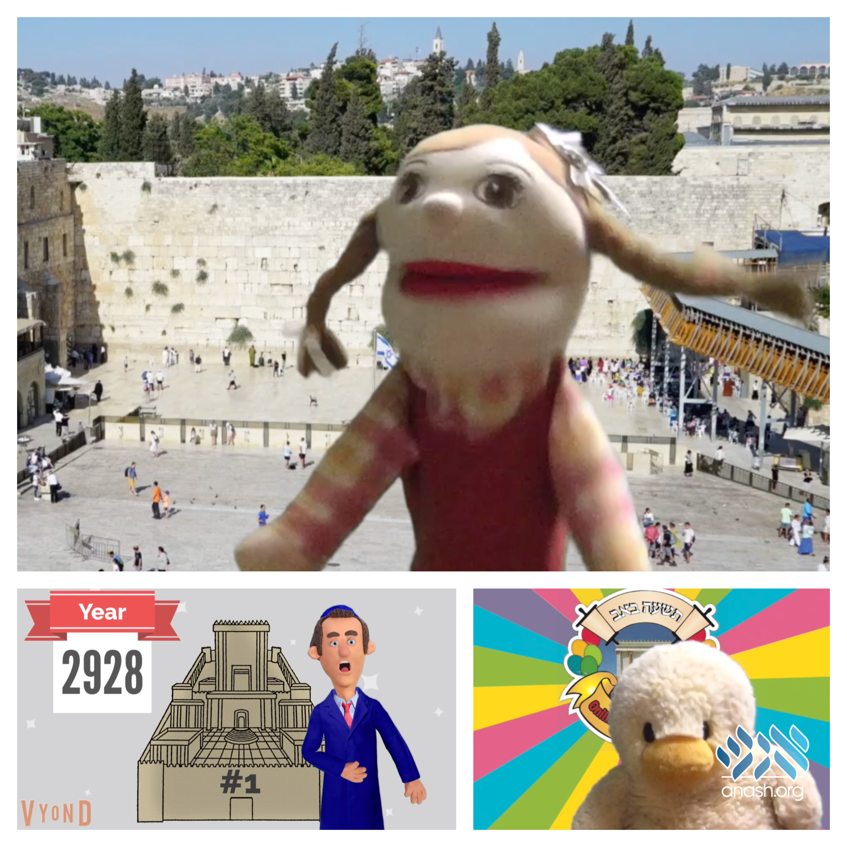The emcee of Tisha B’Av Camp, a yellow duck puppet named Katchkel, leads campers on a 4-hour journey through the history, halachos, minhagim, and lessons of Tisha B’Av — with a special emphasis on bringing the Geulah!