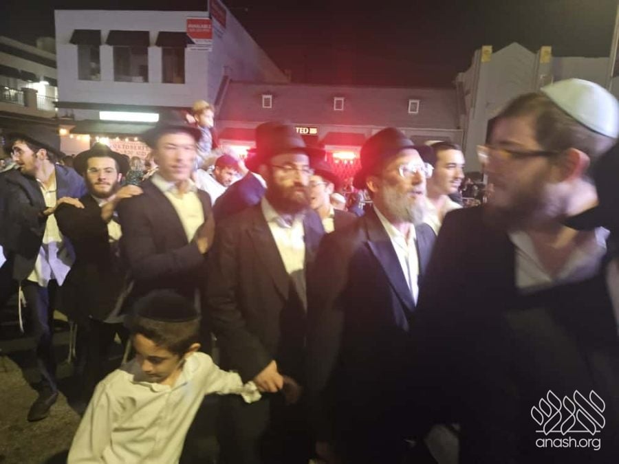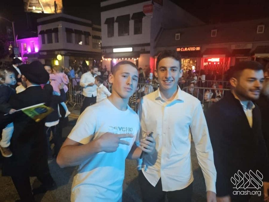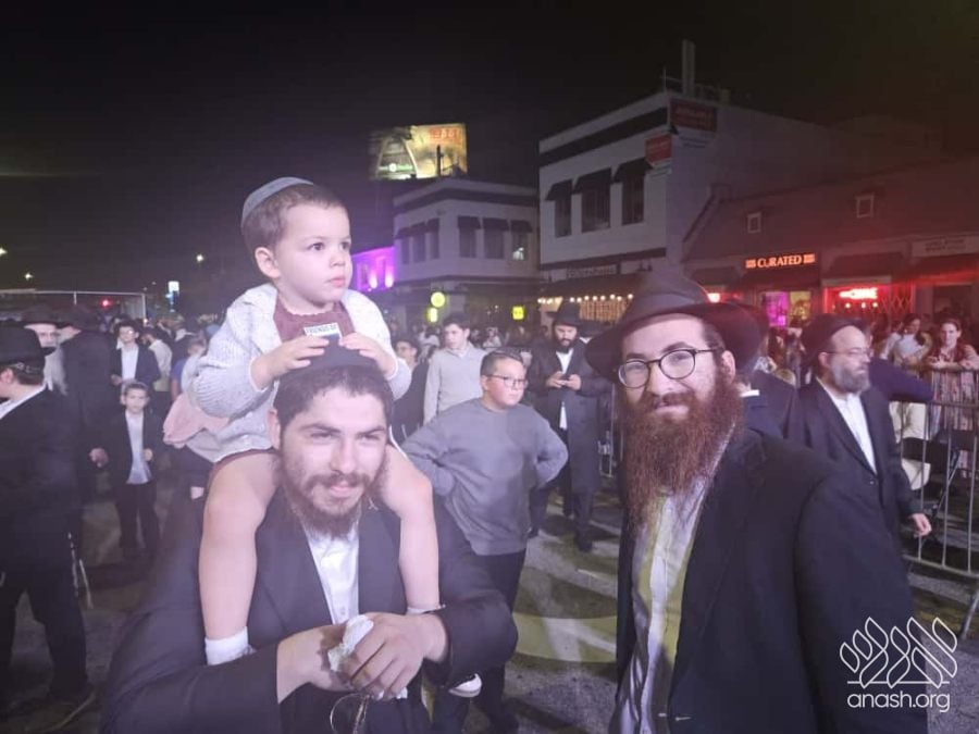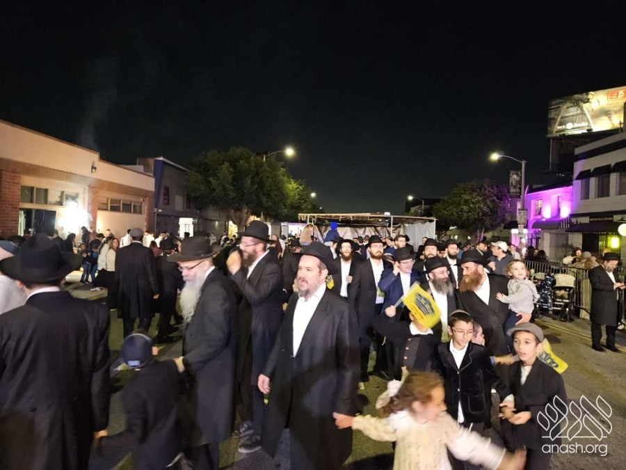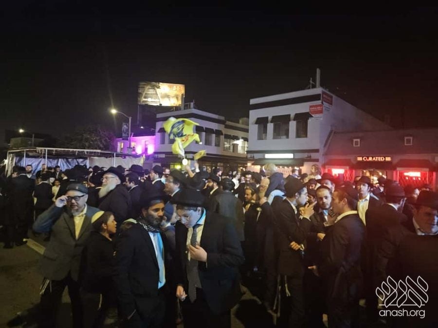 Hundreds of men, women, and children – along with shluchim, bochurim, and anash – gathered Wednesday night across Los Angeles for a citywide Simchas Beis Hashoeiva celebration, featuring music, dancing, and a performance by singer Bentzy Marcus, along with special entertainment for children.