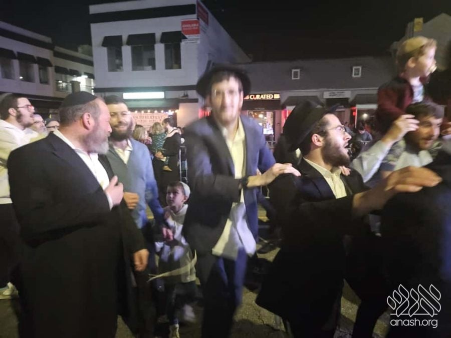 Hundreds of men, women, and children – along with shluchim, bochurim, and anash – gathered Wednesday night across Los Angeles for a citywide Simchas Beis Hashoeiva celebration. The lively event featured music, spirited dancing, and a performance by singer Bentzy Marcus, along with special entertainment for children.