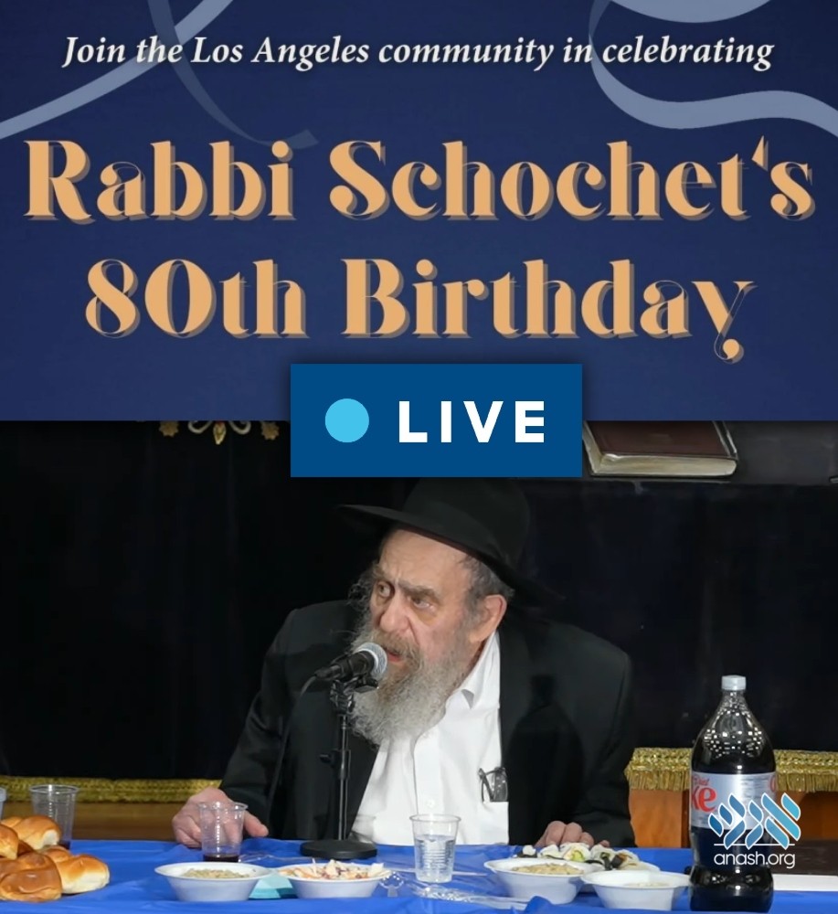 Join Live Now: A grand farbrengen will celebrate the 80th birthday of Rabbi Ezra Schochet, beloved and revered Rosh Yeshiva of Yeshivas Ohr Elchonon Chabad. Anash.org will be live-streaming the farbrengen.