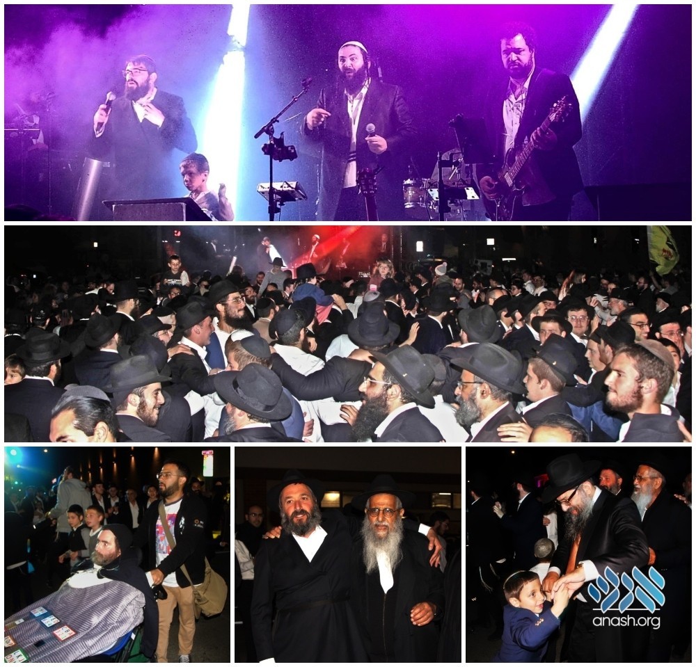 Leading the joyous dancing and celebration were singers Bentzi Marcus and Moshe Storch, and hundreds joined together to dance “until the street itself danced!”