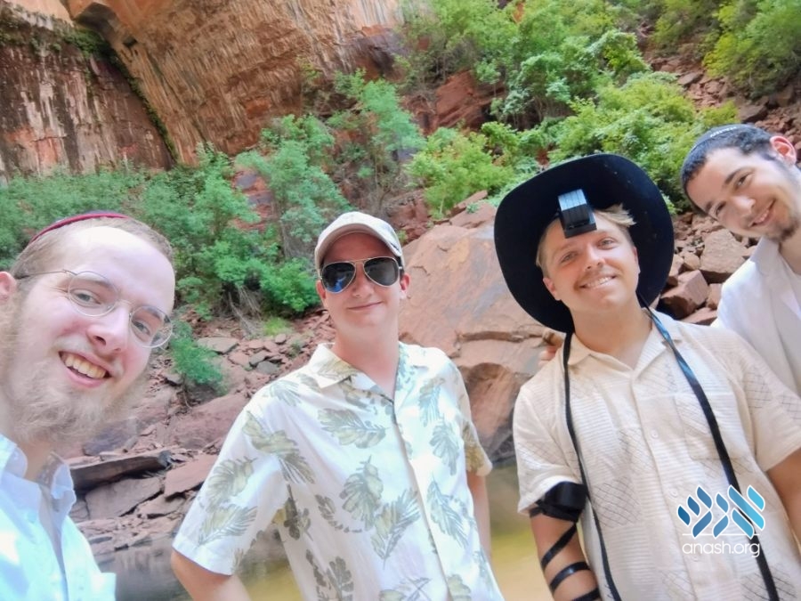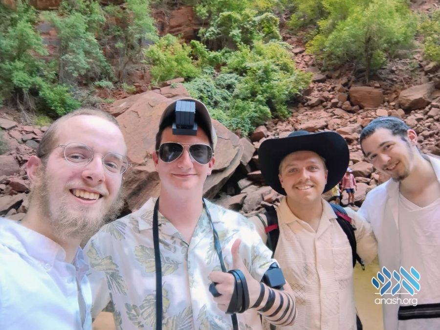 Last week, as part of the Merkos Shlichus program, we traveled from 770 to St. George, Utah, to assist the local shliach, Rabbi Mendy Cohen, with his daily activities and to search for more Jews in the area. One day, we decided to go on one of the well-known hikes nearby, hoping to meet some Jews and do some mivtzoim along the way.