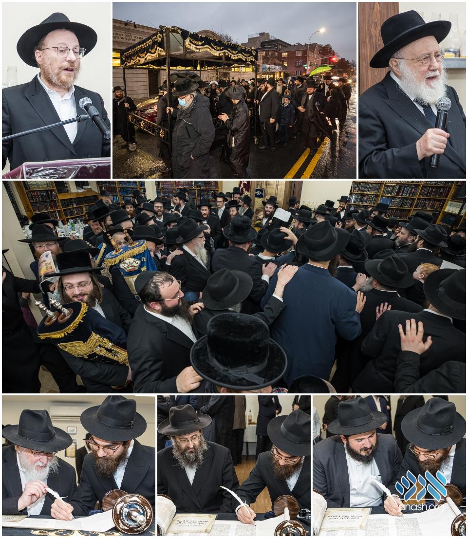 A new Torah, donated by R’ Chaim Piekarski and family, welcomed in a grand celebration with notable rabbonim and friends, began in Heichal Menachem and ended in Bais Menachem in Boro Park.