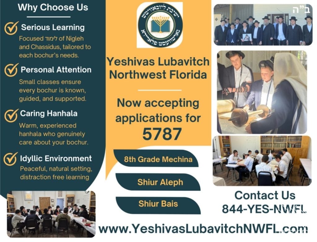Yeshivas Lubavitch Northwest Florida- A place to learn, grow and thrive. Space is limited. More information can be found at www.YeshivasLubavitchNWFL.com.