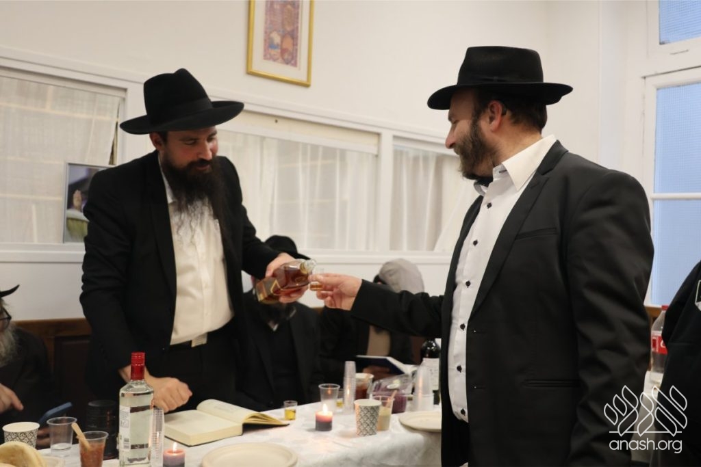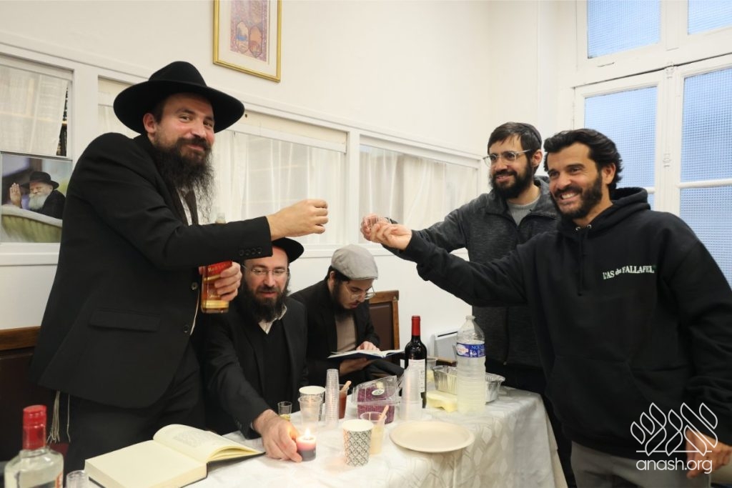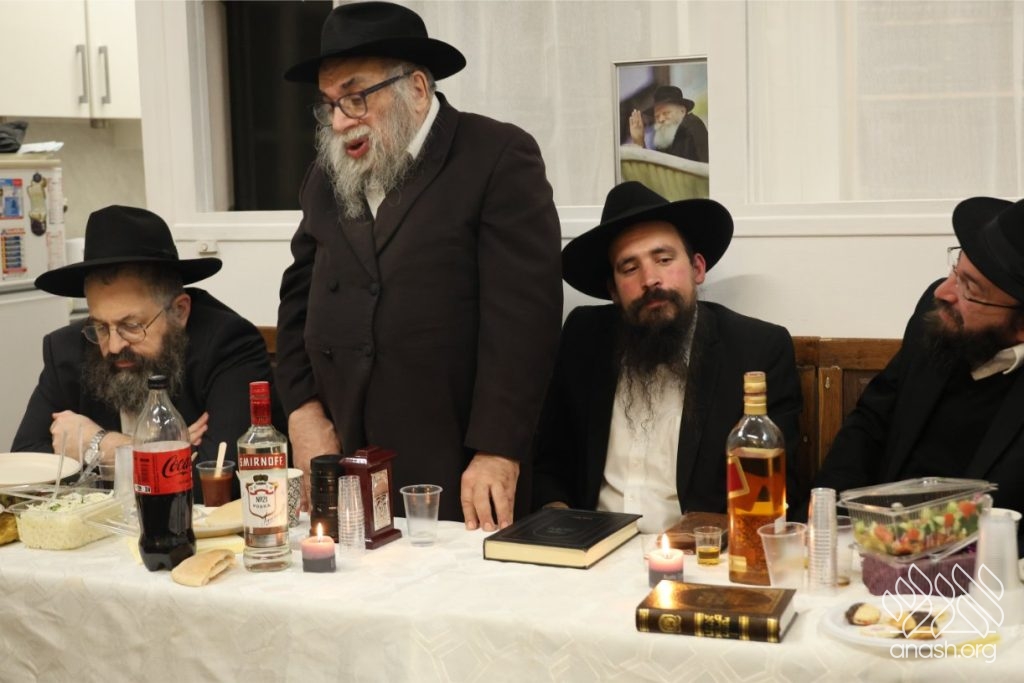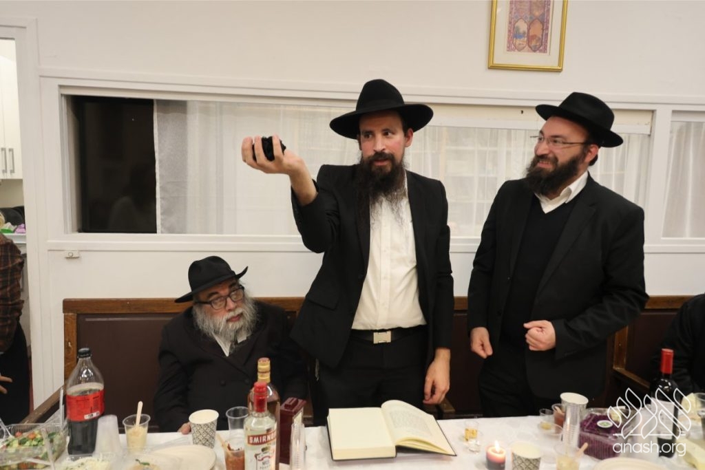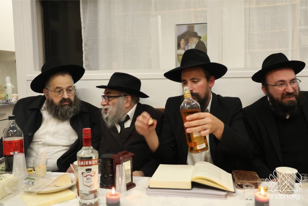 The evening continued with a lively farbrengen that lasted for hours, joined by family and friends.