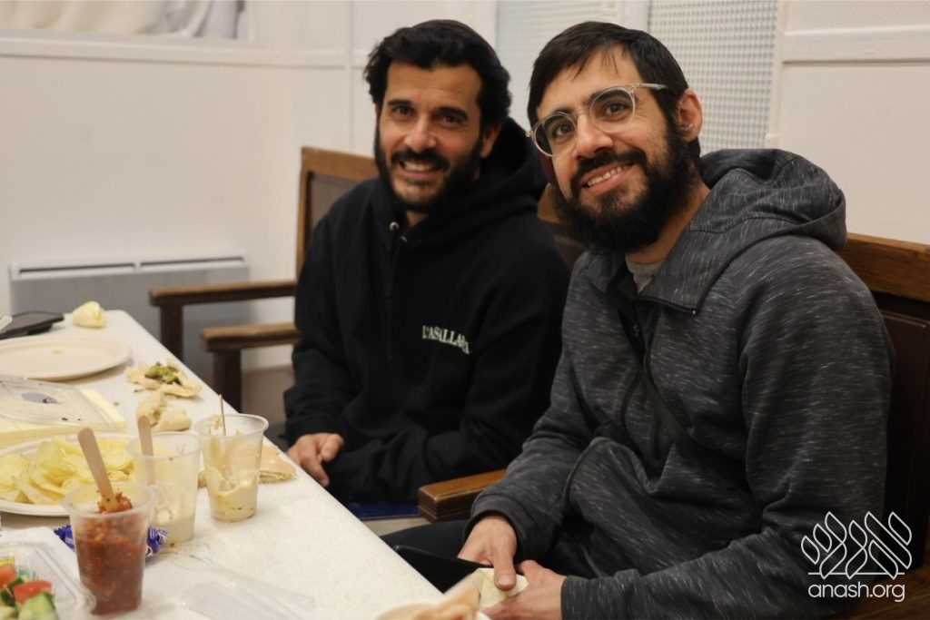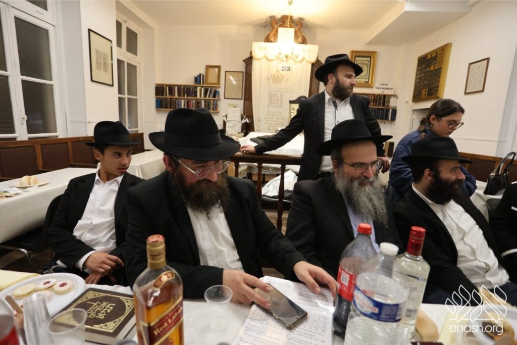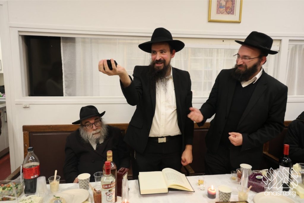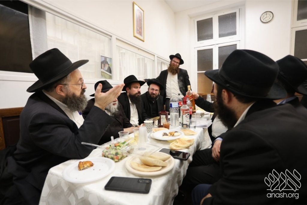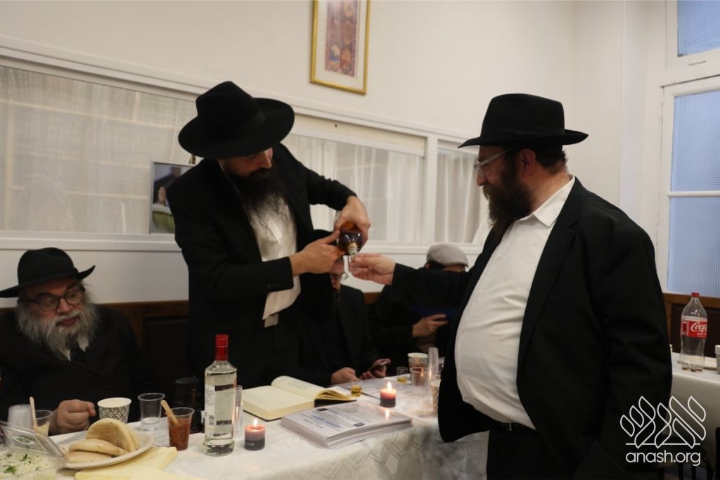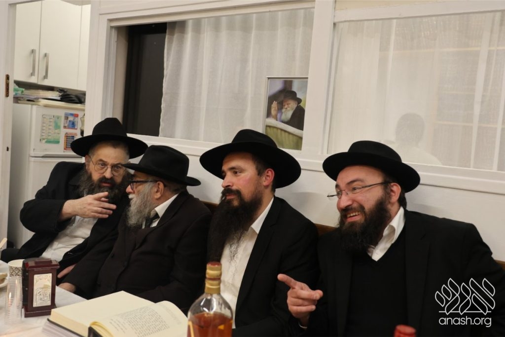 The evening continued with a lively farbrengen that lasted for hours, joined by family and friends.