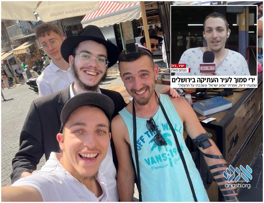 Menachem, who is from Crown Heights, was visiting Eretz Yisroel. Having a special passion for mivtza tefillin, he dedicated time on Friday donning tefillin with passersby at a tefillin booth in Yerushalayim.