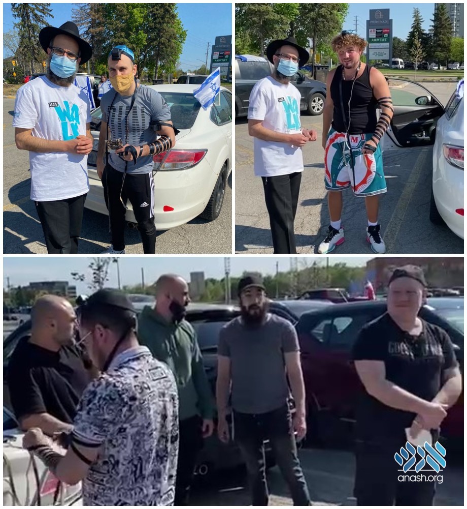 After threats were issued to Toronto Jews in wake of the ongoing war in Eretz Yisroel, Lubavitcher Rabbi Yirmi Cohen responded by putting on tefillin with over 100 people, a number of them for the first time.