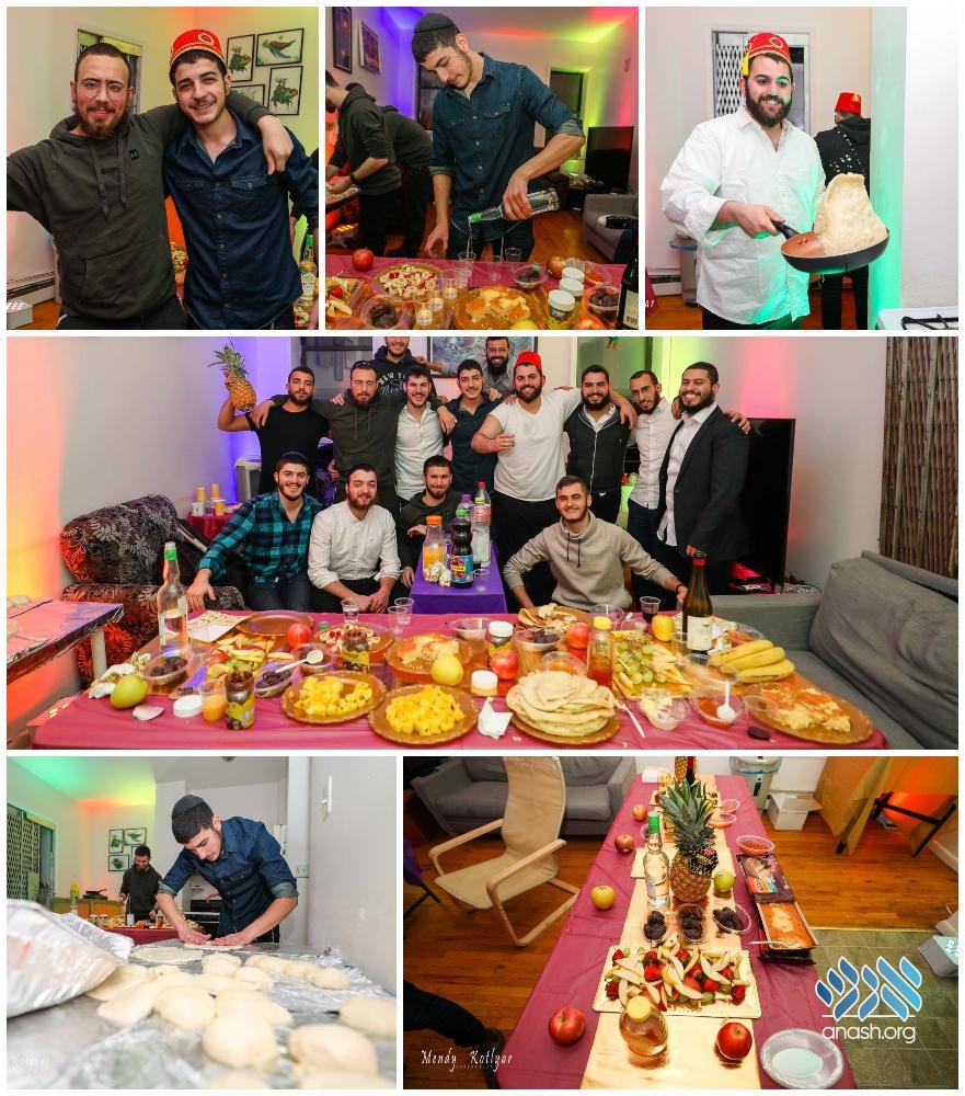 The post-Pesach Mimouna feast was held in Crown Heights by a group of bochurim of Moroccan descent, after hours of preparing mofeltta and other traditional foods.