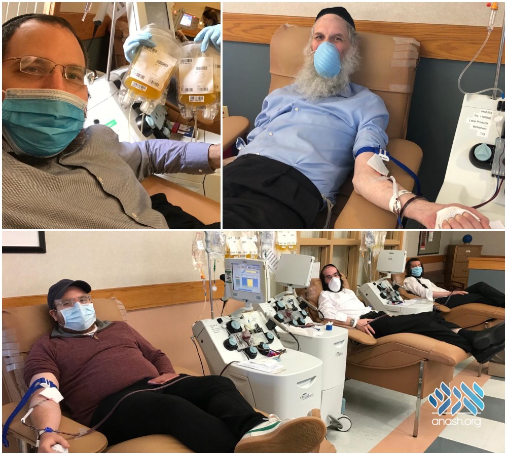This group was the third from Crown Heights. The previous two donated plasma last week, one at the same location, and the second in New Jersey. In total, the three groups brought more than 70 Lubavitchers from Crown Heights to donate, and more groups are planned for the coming days.